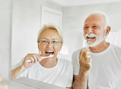 Be sure to brush your teeth at least twice a day use a soft brush and non-abrasive toothpaste. You should also floss daily or use a water flosser. Additionally, if you have an implant bridge or fixed denture, you can use a water flosser to clean underneath it.